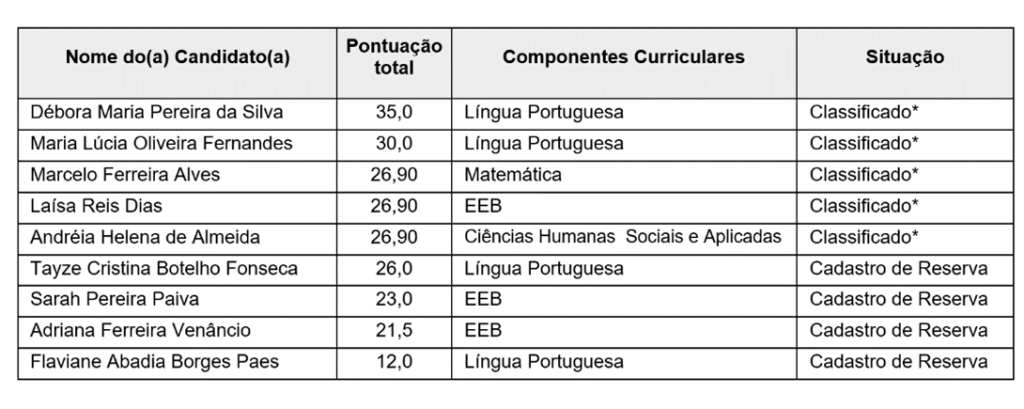 A Superintendência Regional de Ensino de Patrocínio divulga o resultado definitivo dos classificados do processo seletivo interno para as 05 vagas temporárias do Programa de Recomposição das Aprendizagens (PRA) do ano de 2025: